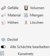 Werden die Sohlhöhen bzw. die Gefälle von Haltungen geändert, können auch die damit verbundenen Sohlhöhen der Schächte angepasst werden. Eine Materialänderung kann für ausgewählte Schächte und Haltungen als Massenbearbeitung anhand der Materialien in einer Komponentenliste durchgeführt werden.