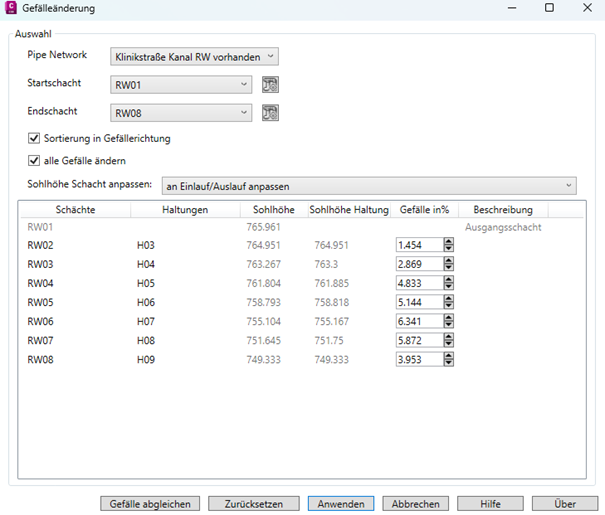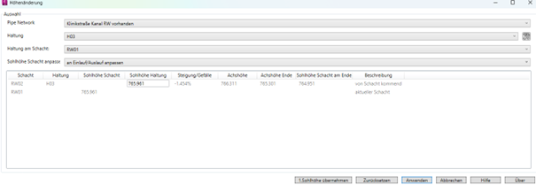 Werden die Sohlhöhen bzw. die Gefälle von Haltungen geändert, können auch die damit verbundenen Sohlhöhen der Schächte angepasst werden.